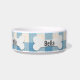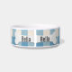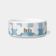 Wit hondenbot met de naam van de hond op aqua blauw en witte gingham achtergrond. De naam is bewerkbaar.