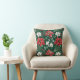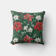 Deze Holiday-kussen hebben een patroon van witte bloemen, groene bladeren, rode bessen en poinsettia bloesems. De afbeeldingen van de waterverf worden aan beide zijden van de kussen op een middelgrote, donkerblauwe groene achtergrond geplaatst.