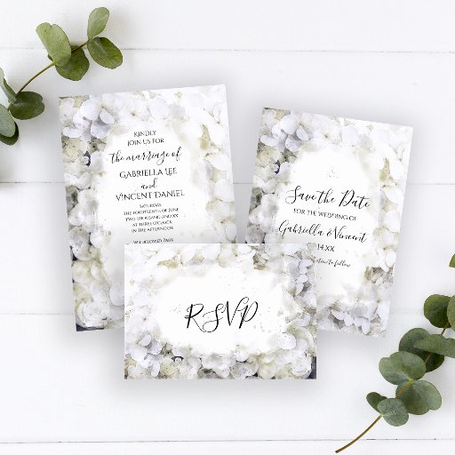 White Hydrangeas Waterverf Wedding Save the Date