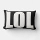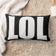 White LOL on Black Pillow