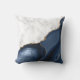 Elegant white marble and navy blue agate gilded with faux gold glitter combine in this luxurious outdoor throw pillow.