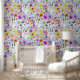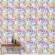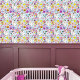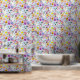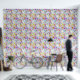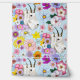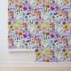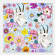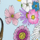 Een zijportret profiel van een witte berggeit. Wilde bloemen zijn rondom de berggeit allemaal getekend in een tattoo stijl in een achtergrond van blauw