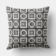 Vet geometrisch patroon heeft vier witte vierkantjes met ruimte tussen deze vierkanten op een zwarte achtergrond. De diagonaal tegenovergestelde dikke vierkanten elk bevatten een dunne witte cirkel met een dik gelijk teken binnenin. In tegenstelling, bevatten de dunne vierkanten elk een dikke witte cirkel die de randen van het vierkant met een dun verticaal gelijk teken binnenin raakt. Digitaal gemaakt afbeelding. Copyright © 2015 Claire E. Skinner. Alle rechten voorbehouden.