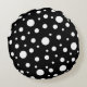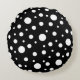 White op Black Polka Dot Pattern Rond Kussen