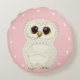 White Owl and Stars on Light Roze Round Pillow Rond Kussen