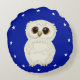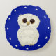 Schattigee witte baby uil en sterretjes op koningsblauw kussen.