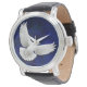 Origineel kunstontwerp van een witte duif, een vredessymbool, van tekenaar Carolyn McFann van Two Spinnende Cats Studio gedrukt op een kwaliteitshorloge.