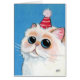 Een witte en crèmekleurige perzische kat met een rood en wit gestreept pet met een poompoot. Fun whimsical-kaart, ideaal voor verjaardagen. Creëer van een origineel schilderij © 2010 Lisa Marie Robinson