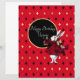 Festive verjaardagsgroet is voorzien van een illustratie van het witte konijn in rode tintelende koningin van harten met zwarte en gouden aanpasbare tekstcirkel en rode / gouden / zwarte diamantachtergrond.
