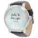 white simple minimal text style wedding blue heart horloge