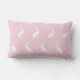 Witte, middelgrote rechtop zittende bundels met mini-stippen patroon op een wazige roze achtergrondlumbale kussen. De achtergrondkleur is vrij verkiesbaar. Dit kussen is een prachtig cadeauidee voor alle konijnenhuisvrienden voor vele gelegenheden zoals Pasen, huisverwarming of verjaardagen. Het is een mooie combinatiepartner voor aangepaste tekst en monogram-kussens. Ontwerp © Y PAPERIE #ybeepaperie #harelumbarpillow #rabbitlumbarpillow #bunnypatternlumbarpillow