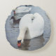Witte zwanen symboliseren liefde, toewijding, schoonheid en genade. Rond kussens met een vreedzaam winterseizoen zal een elegant accent zijn op het decor van uw huis of een stijlvol geschenk voor elke gelegenheid (Saint Valentijnsdag, Moederdag, grootouders Dag, verjaardag).