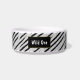 Stijlvol kat gerecht gemaakt met een afbeelding van een zwarte en witte tijgergestreepte bontdruk rond het gerecht, en een gouden toongesneden zwart tekstgebied, in het midden, voor de naam van je huisdier. Met de witte tekst kunt u uw huisdier aanpassen met de naam van uw huisdier, want een gepersonaliseerde kom waar uw vriend trots op kan zijn. Maakt het doelbewuste cadeauidee.