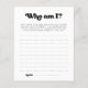 Who am I? Add laughter to your bridal shower with this Who Am I game. Guests read clues and guess which friend or family member is being described. An easy, interactive icebreaker perfect for bridal showers, bachelorettes, and engagement parties.