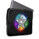 Artistiek getekende, lichtgevende pentagram met vijf magische elementen, water, aarde, vuur, astrale, lucht op zwarte achtergrond. Wiccan pentagram. Wicca