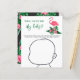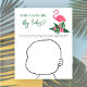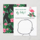 Het baby shower uitnodigingsontwerp heeft roze flamingo met weelderige groene bladschijfjes en tropische hibiscusbloemen. "Aloha Baby". Een tropisch bloemenpatroon met zwarte achtergrondkleur kleedt zich op de achterkant van de kaart.