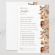 Dit elegante 'Wie kent de bruid het best?' bruidsshowerspel heeft een prachtige echte gouden folie lijst en handgeschilderde boho-waterverf verbrande oranje en terracotta bladeren, crème en beige dahlia's en mooie roestkleurige rozen op een witte achtergrond. Vind bijpassende items in de Bridal Shower Autumn Romance Collection.