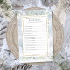 Met delicate waterverf groene bladeren op een achtergrond van winters sneeuwvlokken, kan dit leuke bruidsjonker spel worden gepersonaliseerd met je eigen wie kent de bruid het best vragen. Ontworpen door Thisisnotme