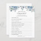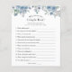 Vrijgezellenfeest spelkaart met waterverf groen en blauwe bloemen. Een leuke manier om met douchegasten te communiceren.