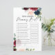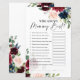 Wie kent mama het beste? Baby shower Spelkaarten in Boho Bourgogne Bloemen Thema