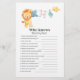 Zet de kennis van je gasten op de proef met dit leuke "Who Knows Mommy Best?" spel! Versierd met bosdieren zoals de vos, aap en giraffe, is het een geweldige manier om te lachen, te binden en aanstaande moeder te vieren.
