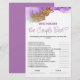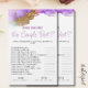 "Wie kent het echtpaar het beste?" Paarse Vrijgezellenfeest Game is een leuke en interactieve manier om de bruid en bruidegom te vieren terwijl je gasten aantrekt. Ontworpen met een stijlvol paarse thema, deze game card is voorzien van een reeks luchtige vragen over het paar, het aanmoedigen van het lachen, herinneringen, en vriendelijke competitie. Perfect voor vrijgezellenfeesten, verlovingsfeesten of evenementen van koppels, het voegt een persoonlijk tintje toe en helpt gasten zich meer verbonden te voelen met het liefdesverhaal dat wordt gevierd. Het elegante ontwerp en het speelse formaat maken het zowel een aandenken als een publiekstrekker.