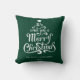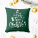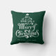 Wij wensen u een Vrolijk kerstfeest gepersonaliseerd Groen Sierkussen. Een feestelijk kerst grafisch kussen met een klassieke boodschap in een leuke kerstboom vorm op een rode achtergrond.