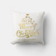 Wij wensen u een Vrolijk kerstfeest gepersonaliseerd Goud en Wit Sierkussen. Een feestelijk kerst grafisch kussen met een klassieke boodschap in een leuke kerstboom vorm op een rode achtergrond.