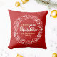 Wij wensen u een vrolijk kerstkrans rood Sierkussen. Een feestelijk kerst grafisch kussen met "We wish you a Merry Christmas" in Christmas Wreath.
