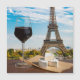 Glas wijn met brieskaas op de Eiffeltoren en de skyline-achtergrond van Parijs. Zonneachtig uitzicht van glas rode wijn dat de Eiffeltoren in Parijs over het hoofd ziet