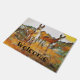 Het kunstwerk aan deze welkome mat is gemaakt van een foto van deze schattige kleine buren die langs de Colorado-rivier in Arizona wonen. Klik op de knop "Aanpassen" om de tekst te wijzigen in de naam van uw familie. U kunt de kleur en het lettertype wijzigen. En ja, het zal er geweldig uitzien naar je voordeur!