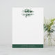 Het botanische letterhoofdontwerp van de elegant toont jouw naam en/of bedrijfsnaam die door een waterverf foliage grens in schaduwen van jager en bosgroen wordt gevormd. Voeg uw bedrijfscontactinformatie langs de bodem in wit bij het coördineren van donkerblauw toe.