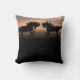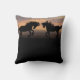 Een prachtig paar wilde paarden dansend hun manen en staarten die in de wind waaien. Deze friesische paarden hebben lange gepaarde fokkoppels. De achtergrondinstelling is een hilair landschap dat wordt bekeken tijdens een gloeiende gouden zonsondergang. Een afbeelding dat interessant zou zijn voor alle soorten paardenliefhebbers.