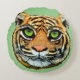 Wild Tiger Face on Green Round Pillow Rond Kussen