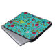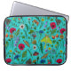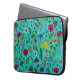 Wilde bloemen en motten op blauwgroen laptop sleeve