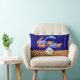 Een monogram gepersonaliseerd kussen ontworpen met een exotische oranje gekleurde luipaard print rand langs de onderkant. Geïllustreerd met een digitaal waterverf afbeelding van een kudde wilde diertjes die samen lopen. Dieren zijn onder andere een springende dolfijn, een giraffe, een olifant, een kangoeroe, een neushoorn, een leeuw en een luipaard. De achtergrond is een blauwachtig paarse kleur.