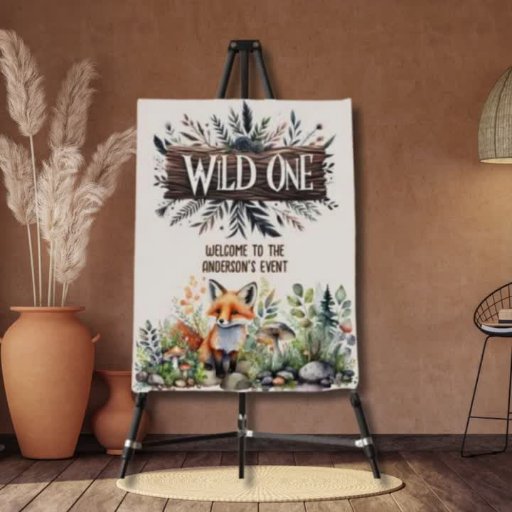 Cute wild one, baby bosdieren thema 1e verjaardag of babyshower evenement item voor dochter, zoon, neutraal in bosdieren kleuren. Design door LeahG. Graphics door Grafixdeals.com