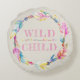 Waterverf inheemse tribal boho veer en kralen krans roze, blauw en goudgeel slogan kussen leest wild kind of verandering in uw eigen slogan of woorden. Achtergrondkleur kan momenteel ook lichtbruin worden veranderd. © Uniek geschilderd in waterverf en ontworpen door Sarah Trett www.sarahtrett.com voor www.mylittleeden.com op zazzle.