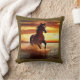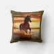 Gooi een kussen in een portret van een prachtig wild paard galopperen door het surf, tegen een zonsondergang hemel