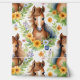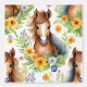 Prachtige waterverf wilde paardenpalomino met stromende manen omgeven door geel en blauw bloemetjes met groen op een witte achtergrond. Perfect voor dat paardenliefhebbende kleine meisje.