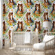 Wilde Paard Stromende Mane Geel Bloemen Greenery Behang