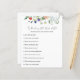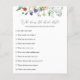 Vrijgezellenfeest spelkaart met een waterverf van wilde bloemen en groenery met een zoemende bij. Een leuke manier om met douchegasten te communiceren.