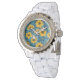 Wilde zonnebloemen en goudkam vogels / geel horloge