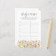 Vier de aanstaande moeder met onze Rustic Baby shower Game. Dit elegante en unieke spel beschikt over boho wilde bloemen en een leuke baby item raden spel. Introduceer een vleugje eigenzinnigheid aan uw evenement terwijl u uw gasten vermaakt. Breng traditie, stijl en plezier samen in je baby shower met dit unieke spel.
