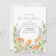 Vier in stijl met deze wilde bloemen bruidsdoucheuitnodigingen, met waterverf in zachte tinten van sinaasappel en lavendel, geaccentueerd door saliegroene botanische bladeren. Het elegante kalligrafiescript voegt een charme toe, waardoor ze ideaal zijn voor een boho chic vrijgezellenfeest, een bloemenbrunch of een voorjaarsviering. Ideaal voor een bloemendiner of een op de tuin geïnspireerde bijeenkomst, deze bruidsdoucheuitnodigingen met vrijgezellenfeesten vangen de schoonheid van de natuur met een moeiteloos, romantisch gevoel. Beschikbaar als digitale download voor duurzame bruiloften. Winkel meer uitnodigingen voor lentebruidsdouches en coördinerende design op www.zazzle.com/dotellabelle. Originele waterverf kunstwerk van Victoria Grigaliunas van Do Tell A Belle.