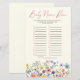 This is a Wildflower Floral Baby Name Race Baby Shower Game.