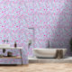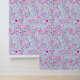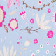 Uniek roze, wit en groen wildbloem botanisch bloemmotief op een bleke poederblauwe achtergrond. Originele kunst van Nic Squirrell.