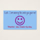 Houd een stapel van deze in je tas dit vakantieseizoen (of het hele jaar door). Een leuke manier om een vriend of vreemdeling te bedanken voor een vriendelijke daad of een vriendelijk gebaar. Dit is een geweldig cadeau voor iemand die alles heeft. Laat er een achter voor je ober / serveerster na het diner met je tip of de barman. Ruimte op de achterkant om uw contactgegevens op te nemen als u kiest.