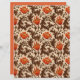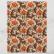 Papier in een William Morris bloemendamast patroon van anemoon bloemen en bladeren- diep chocoladebruine bladeren, en bloemetjes in tinten van roestgoud en sinaasappel, op een medium beige achtergrond