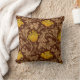 Gooi kussen in een William Morris bloempervlak voor de vocht van anemonbloemen en -bladeren, digitaal versterkt en gekleurd - lichte cacaobruine bladeren, en bloemen in de schaduw van diep mosterdgoud / geel op een donkerchocoladebruine achtergrond